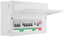 British General Fortress 16-Module 8-Way Populated High Integrity Dual RCD Consumer Unit With SPD