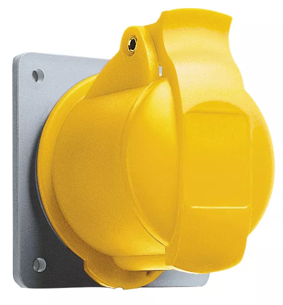2P+E. 110V. Compact design, excellent grip industrial outlet. Connection seal and suspension loop.