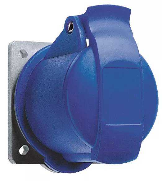 2P+E. 250V. Compact design, excellent grip industrial outlet. Connection seal and suspension loop.