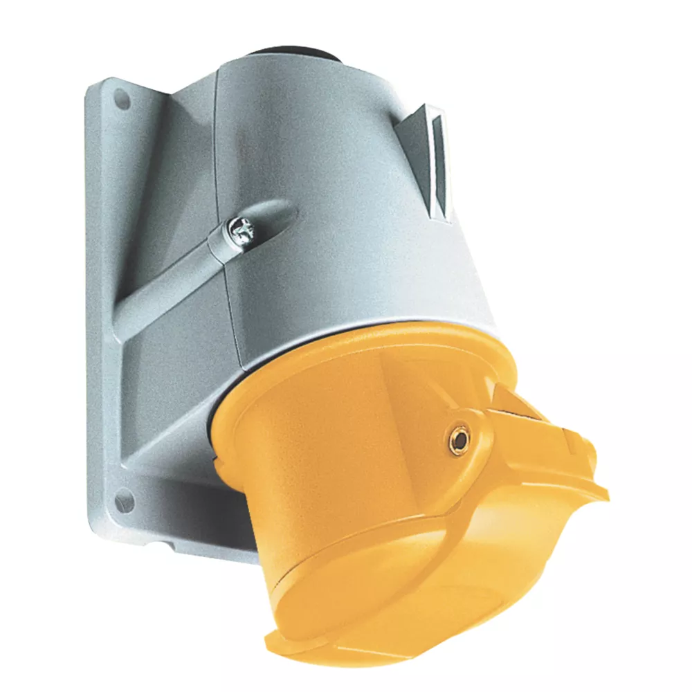 2P+E. 110V. Compact design, excellent grip industrial outlet. Connection seal and suspension loop.