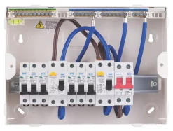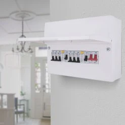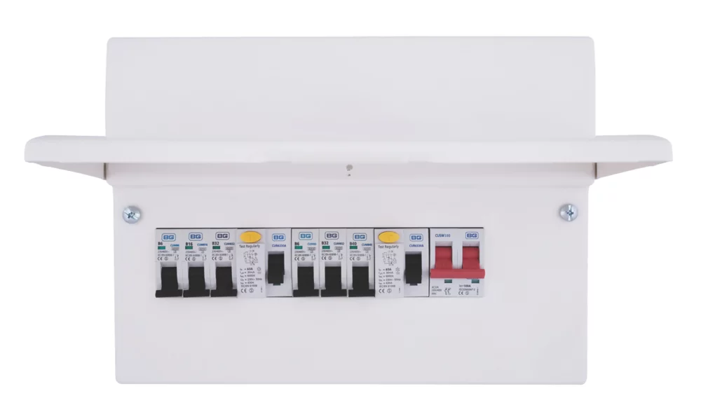 18th Edition Amendment 2. Fully populated, high integrity, all-metal consumer unit with flexible wiring configuration. Modern stylish design with smooth, curved profile. Quick and easy to install with backed-out and retained combi terminal screws. Supplied with fitted spirit level.