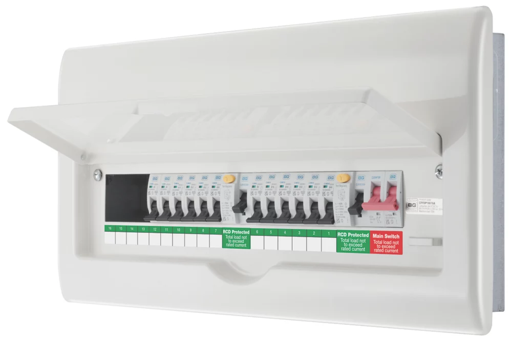 - 12 x Type B MCBs (3 x 6A, 1 x 10A, 2 x 16A, 4 x 32A, 1 x 40A & 1 x 50A)