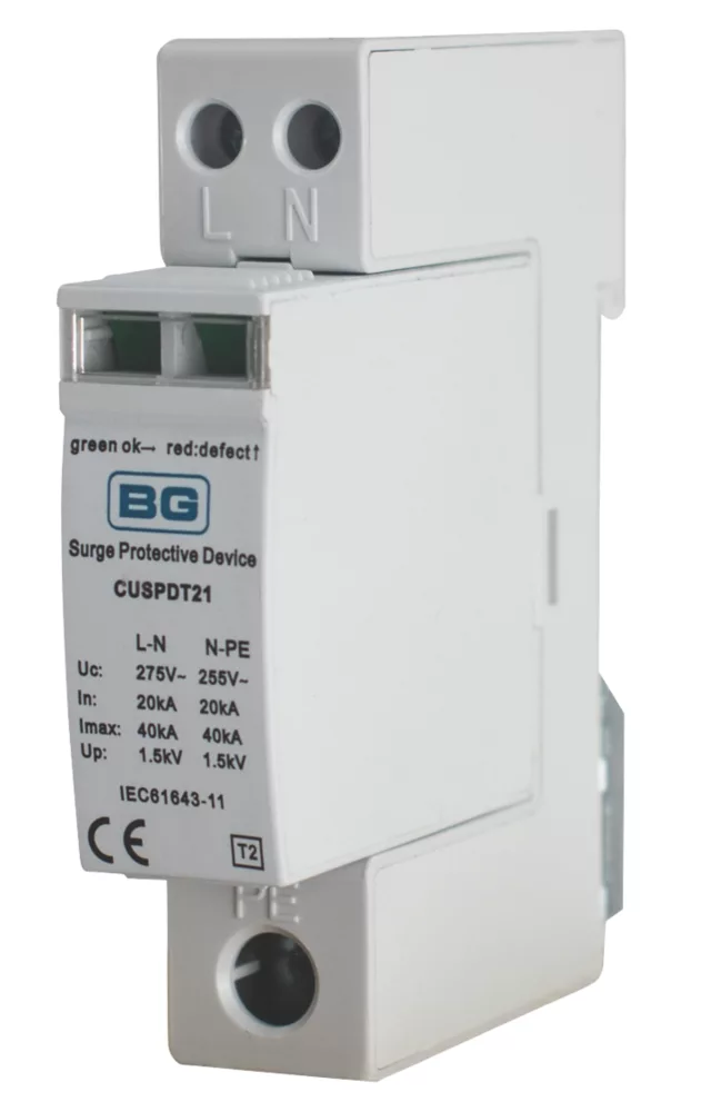 18th Edition Amendment 2. Provides protection against transient over-voltages by diverting the surge to earth within 25ns. Protecting all loads/circuits connected to the consumer unit. Suitable for domestic installations.