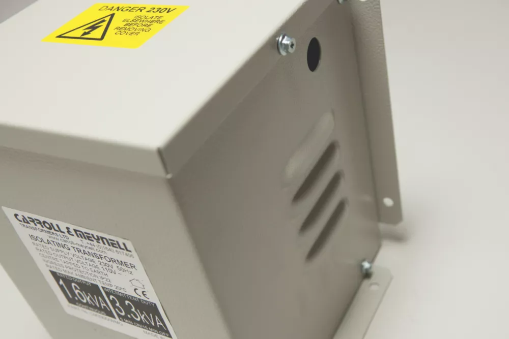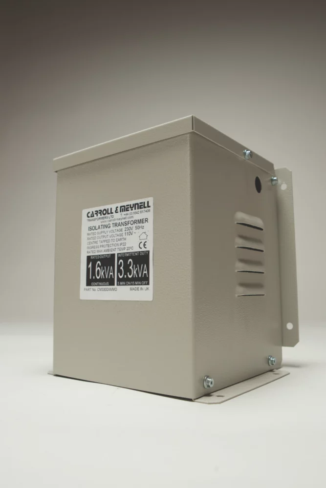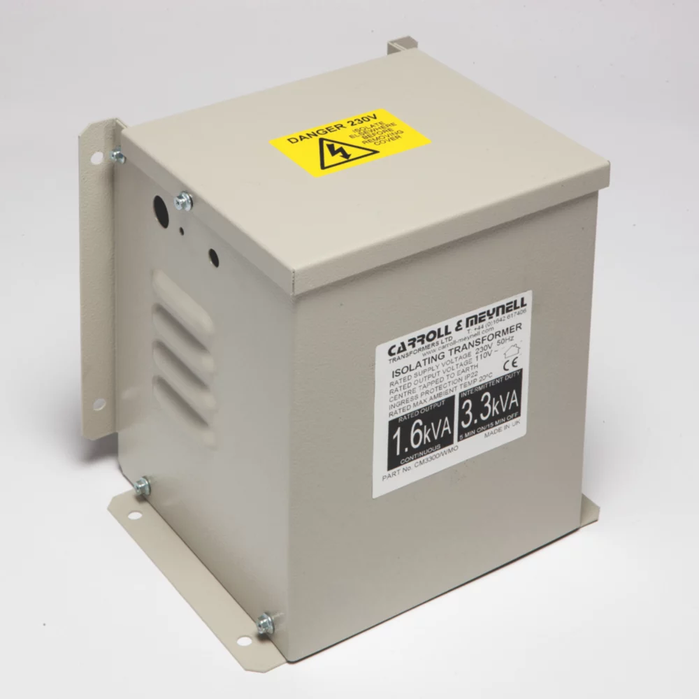 Used for stepping down UK mains voltage to 110V CTE (centre tap earthed) site safety supply. Commonly used with construction industry power tools.