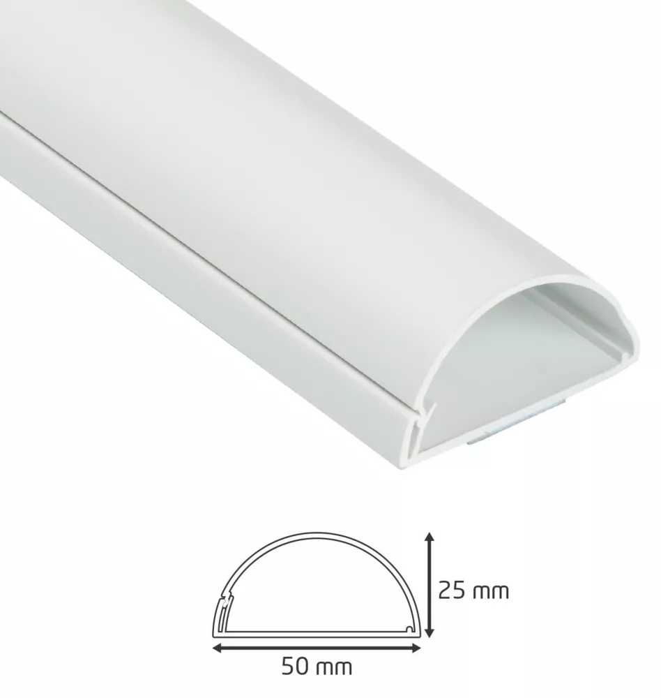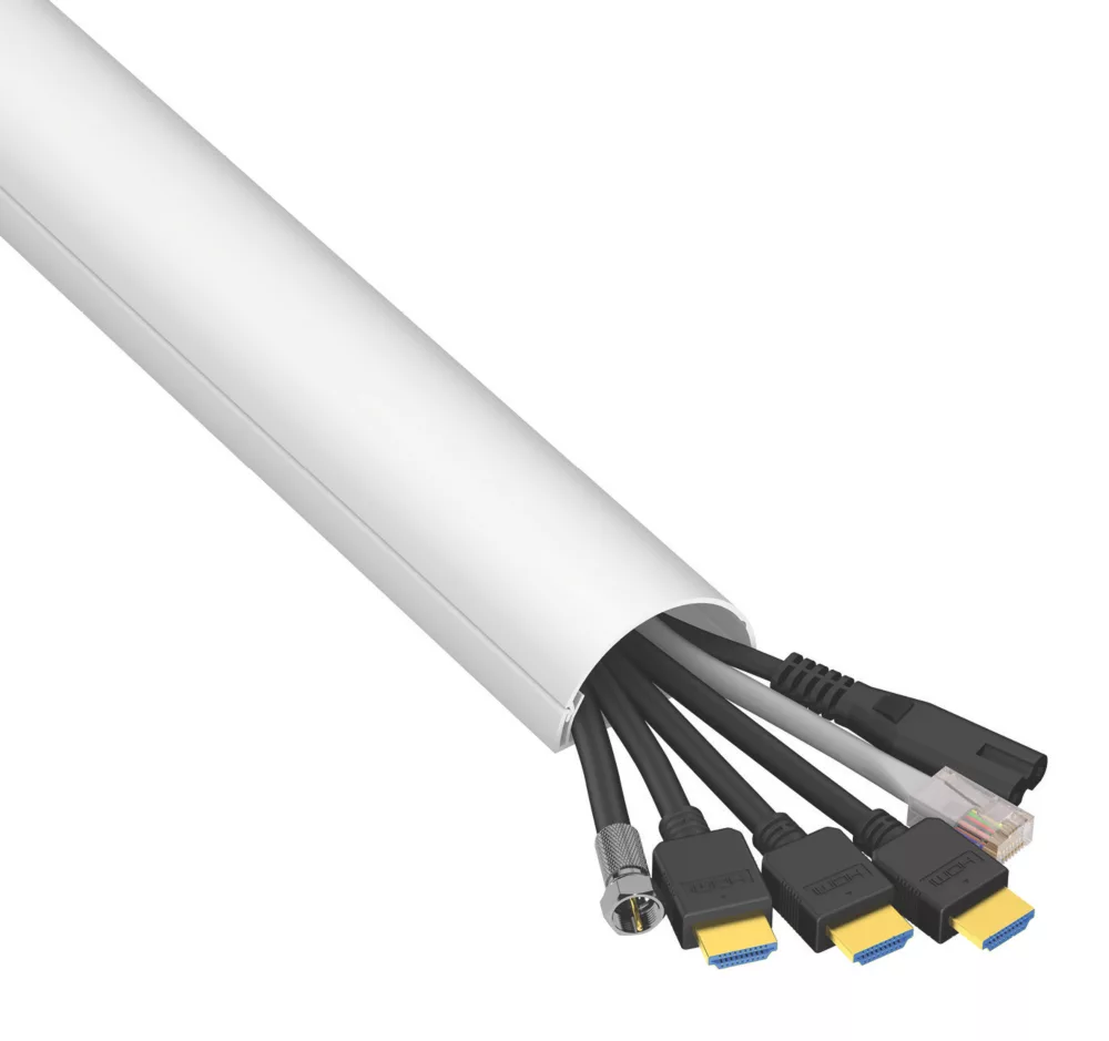 Easy fit, PVC trunking in a stylish ½-circle design that blends with any decor. Ideal cable management solution for wall-mounted screens.