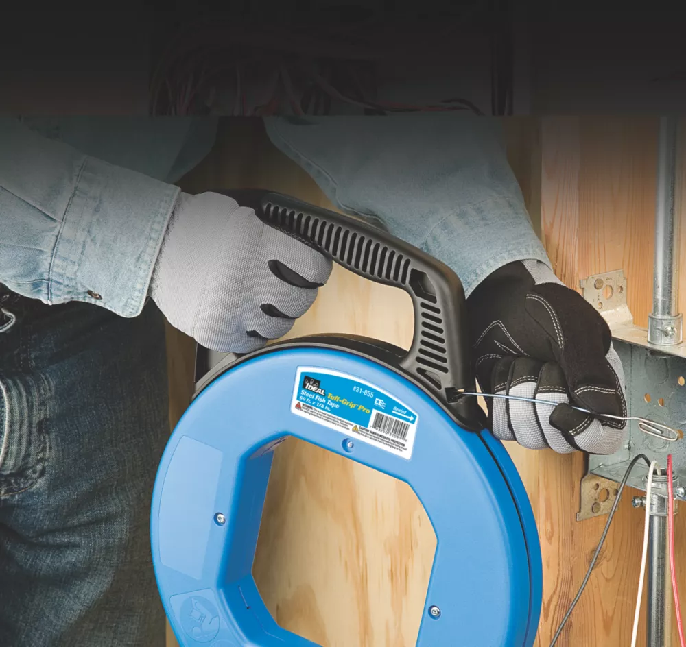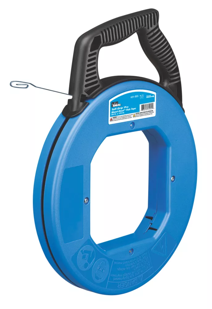 18m. Highly durable, carbon blued steel fish tape for pulling wire and cable through conduit and ducting. Laser marked increments provide instant conduit length. Stiffer tape for long runs.