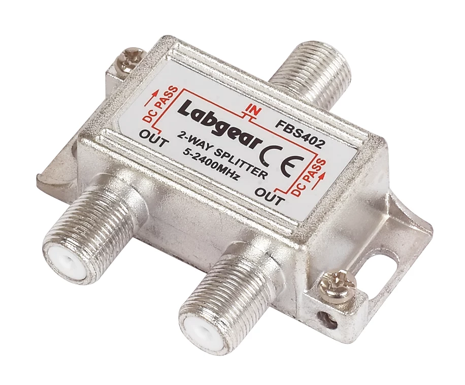 Passive UHF/VHF compact splitter with power pass to all ports. 75ohm F-connectors throughout.