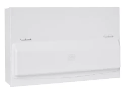 18th Edition Amendment 2. Top-hinged door ensures door remains closed while unit is not in use. Includes 100A switch with two 100A RCCBs and 10 MCBs.