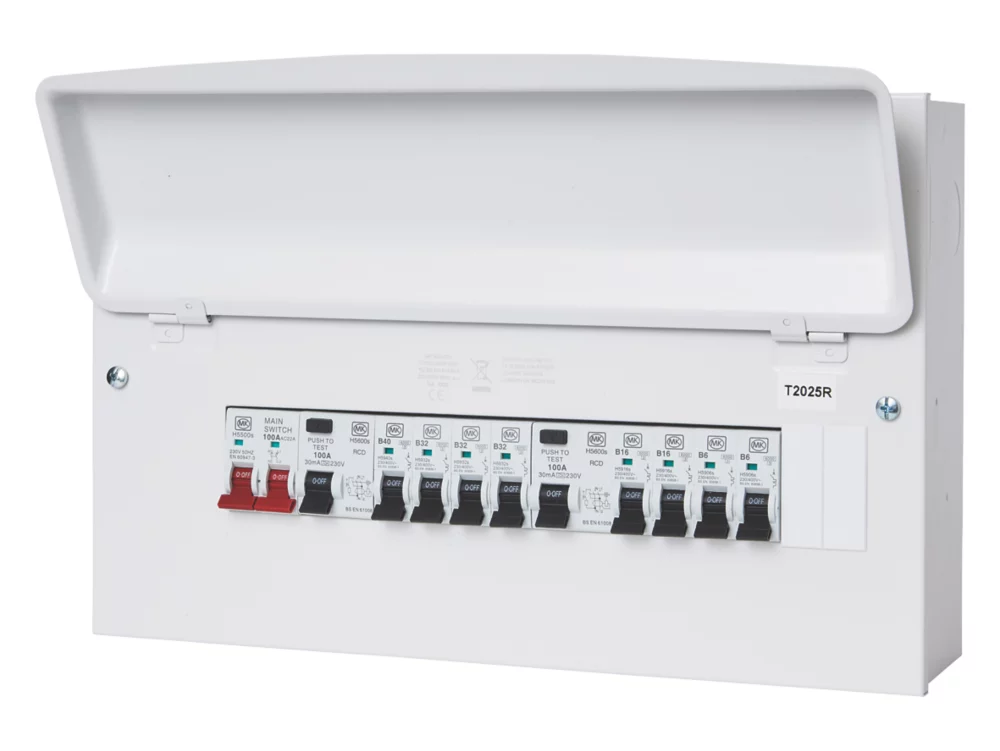 - 8 x Type B MCBs (2 x 6A, 2 x 16A, 3 x 32A & 1 x 40A)