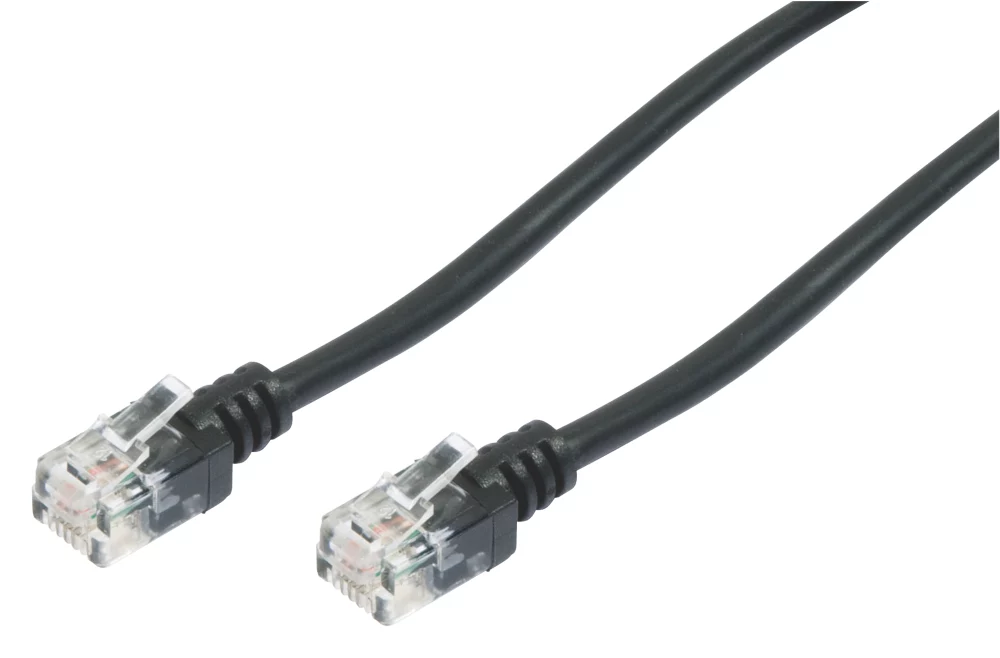 Facilitates a high speed connection between ADSL microfilter and ADSL modem router. Moulded connectors with strain reliefs provide extra durability.