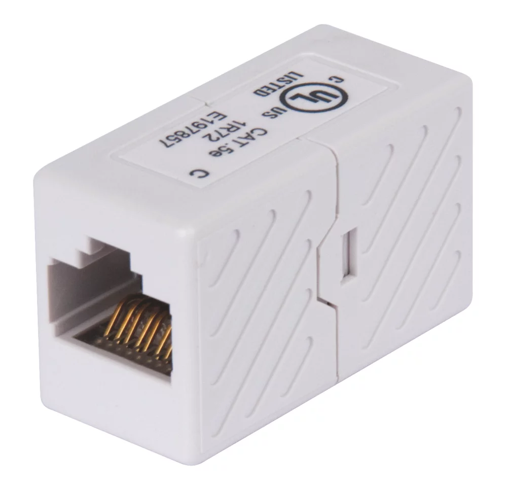 Single RJ45 Coupler. Connects network cables plug to plug.