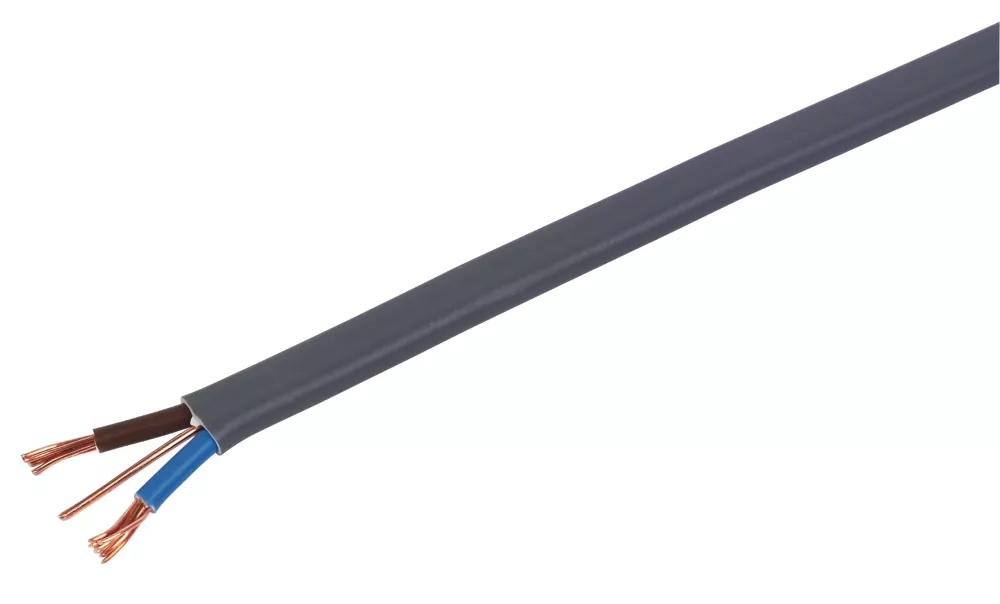 Rigid. PVC sheath. Brown and blue PVC insulation.