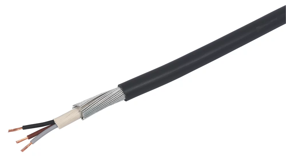 Rigid. PVC sheath. Brown, black and grey XLPE insulation.