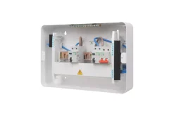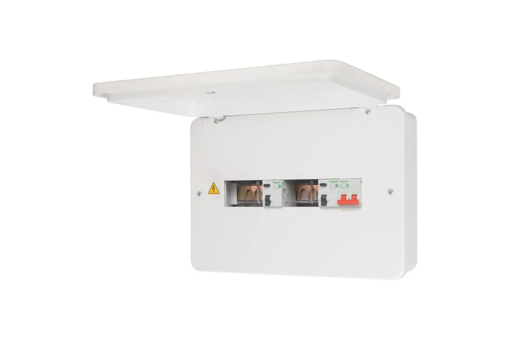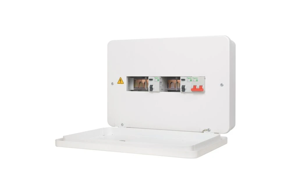 Metal consumer unit with reversible door for flexibility and installation options. Interchangeable magnetic front covers can be tailored to suit interiors. 4 x large rear knockouts and additional top and bottom knockouts with left and right entries for incoming cables. Can be flush-mounted.