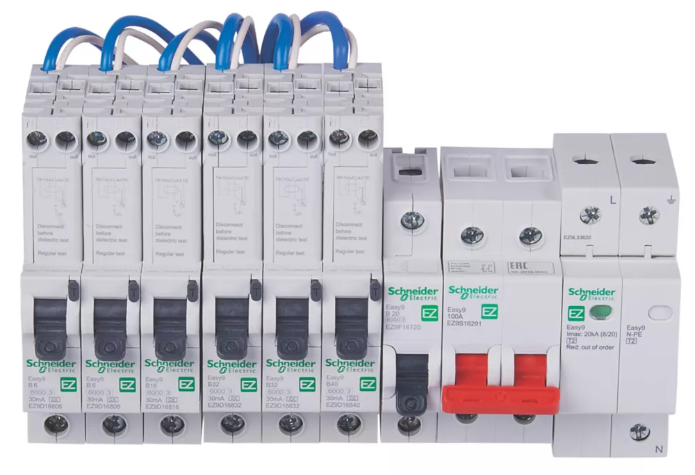 - 6 x Type B RCBOs (2 x 6A, 1 x 16A, 2 x 32A & 1 x 40A)