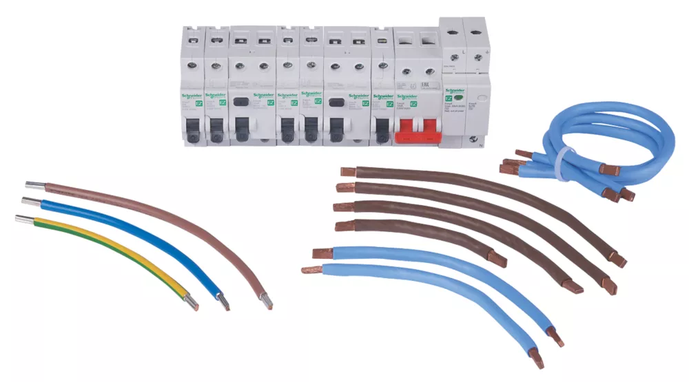 Compiled with the exisiting Easy9 range of MCBs, RCCBs, SPD kit, main isolator and cabling kit to provide the most common circuit configurations. Compact design makes it an ideal solution for rewire and upgrades.