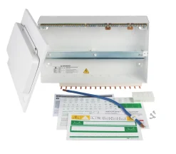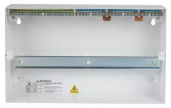 Compatible with the existing Easy9 range of protection devices. Along with its compact design and fully flexible configuration, both the incomer and circuit arrangements make it an ideal solution for rewire and upgrades. Offset DIN rail optimises space for cabling. Main incomer switch can be installed on the left or right. Earth continuity bond from the lid to the door for enhanced safety.