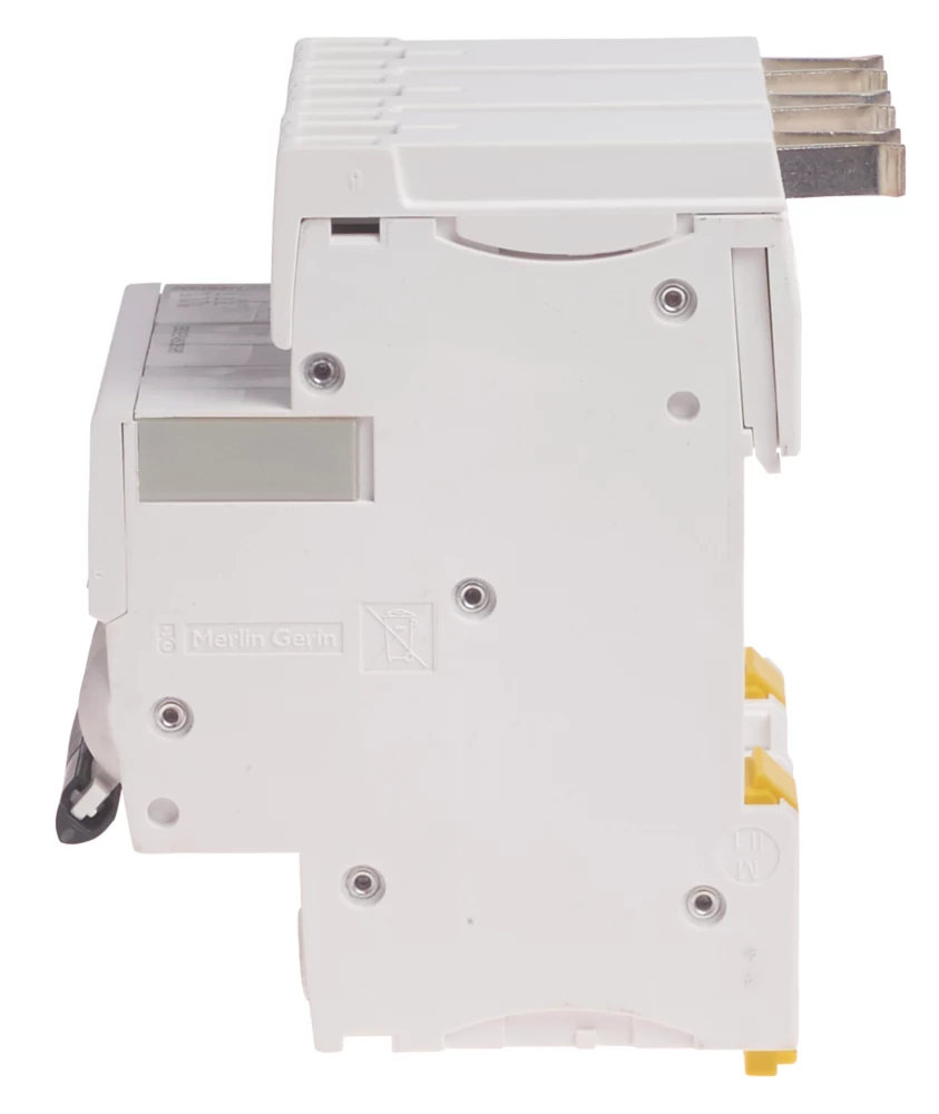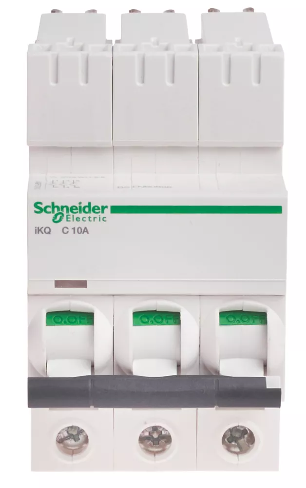 Triple pole, multi-standard circuit breaker. Positive contact indication (on/off indication). Trip-free mechanism. Speed connection of plug-on devices. For use in LoadCentre iKQ Type A and B boards.