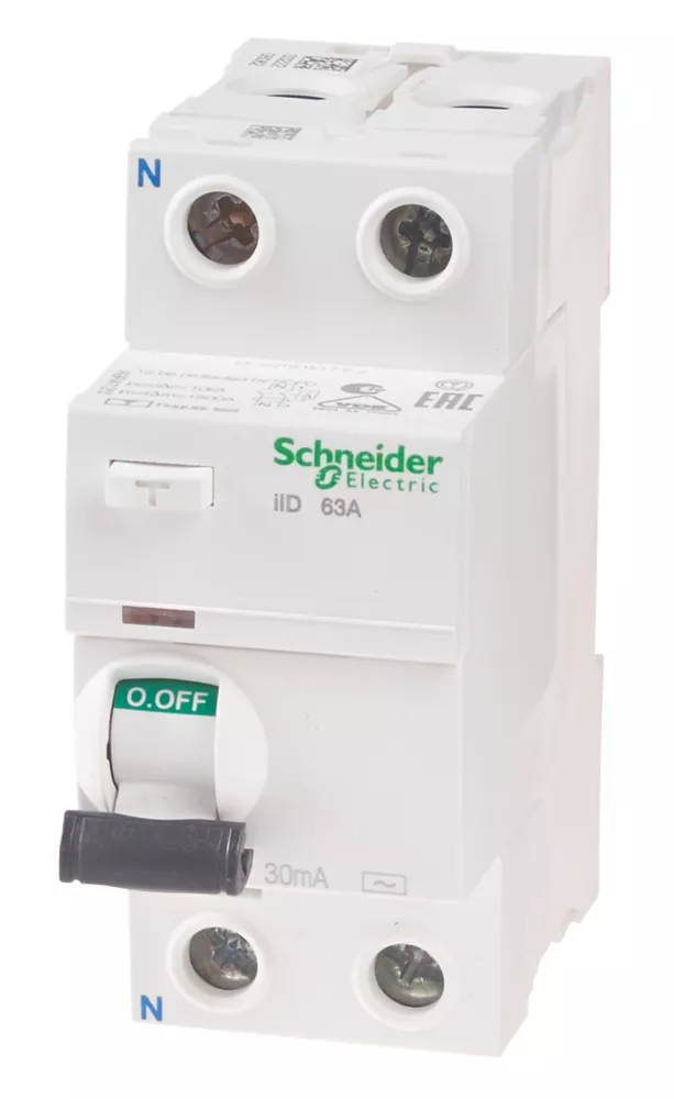 Test button enables periodic testing. Suitable for use as main incomer in KQ Loadcenter distribution boards and for use as additional protection on final sub circuits such as equipment outside equipotential zone, or items requiring 2/4 pole protection such as switched neutral applications.
