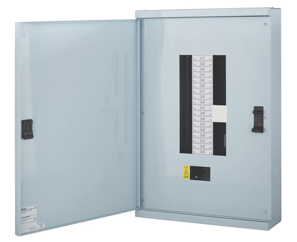 Type-B 3-phase electrical distribution board that requires an incomer to be purchased separately. Central busbar assembly is fully insulated with non-removable barriers. Plug-in feature allows for quick fitting of outgoing MCBs and RCBOs. Control products may also be installed adjacent to the devices and wired through a central channel.