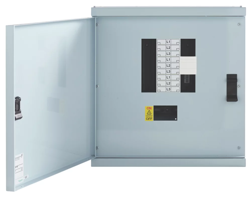 Type-B 3-phase electrical distribution board that requires an incomer to be purchased separately. Central busbar assembly is fully insulated with non-removable barriers. Plug-in feature allows for quick fitting of outgoing MCBs and RCBOs. Control products may also be installed adjacent to the devices and wired through a central channel.