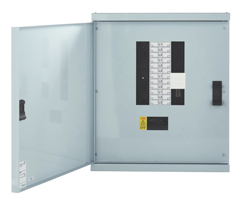 Type-B 3-phase electrical distribution board that requires an incomer to be purchased separately. Central busbar assembly is fully insulated with non-removable barriers. Plug-in feature allows for quick fitting of outgoing MCBs and RCBOs. Control products may also be installed adjacent to the devices and wired through a central channel.