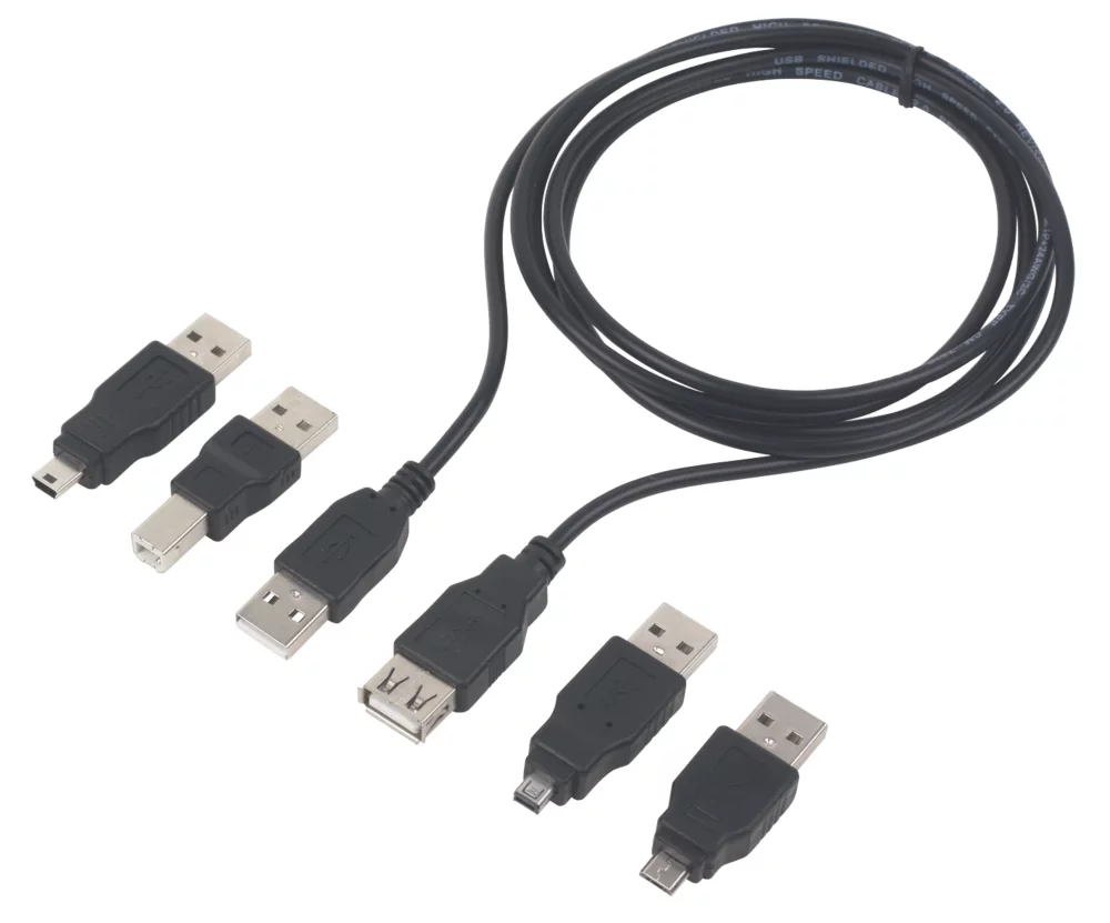 Ideal for connecting a wide range of USB 2.0 devices. Includes 1.8m cable and 5 x adaptors.