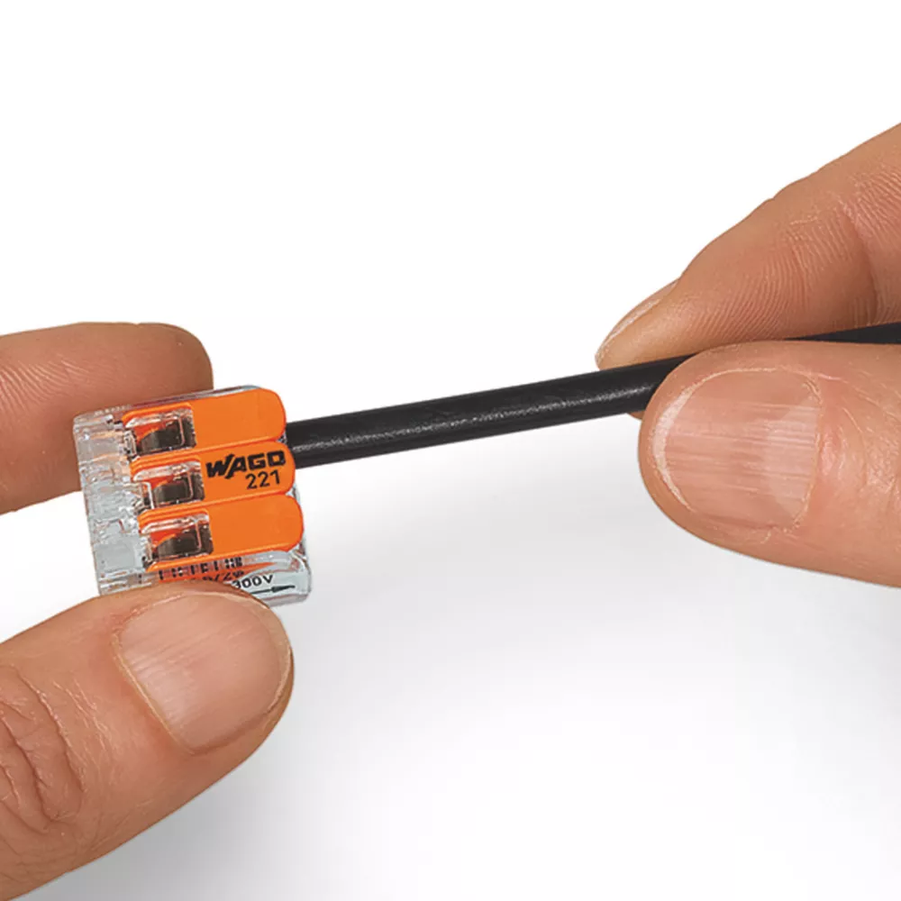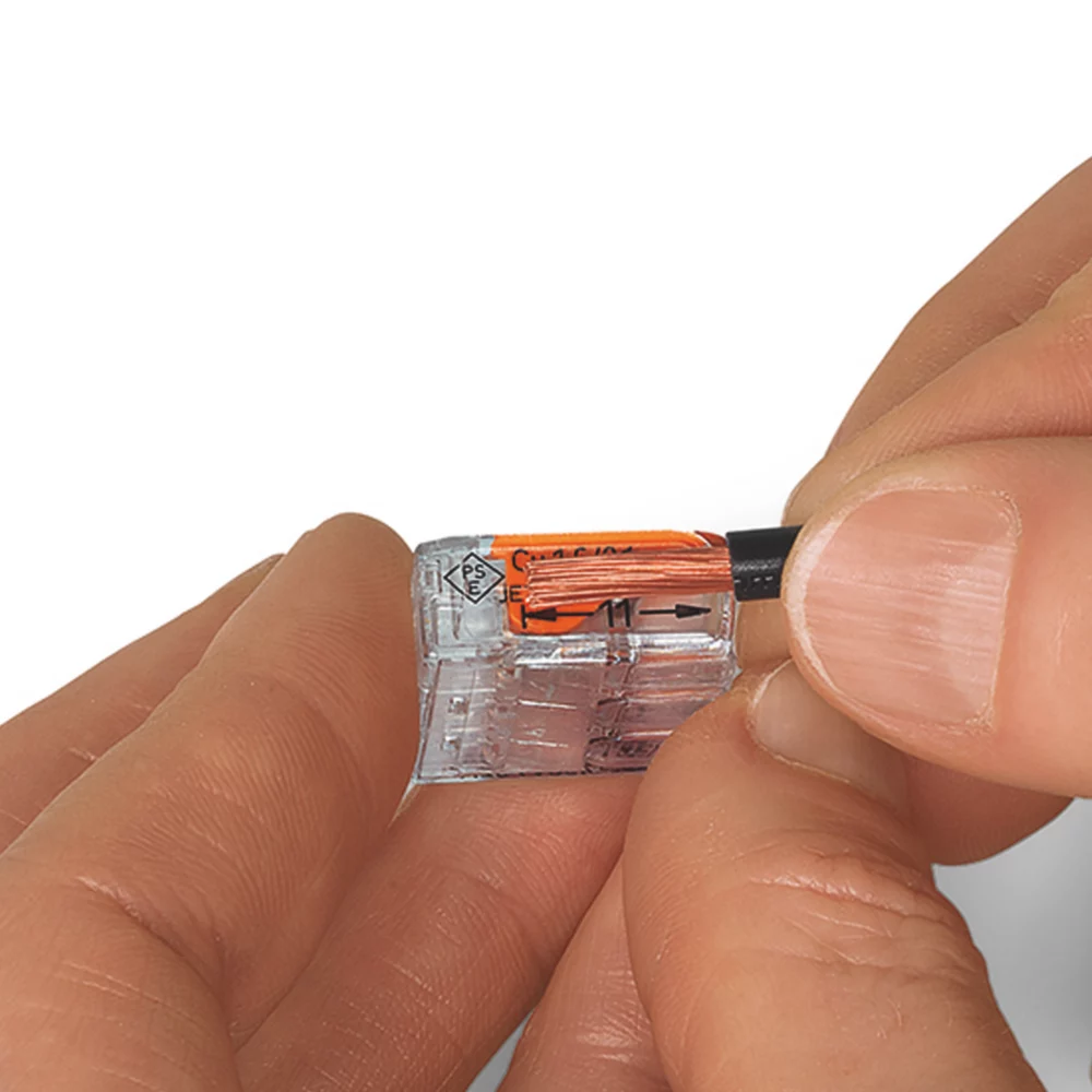 Transparent, reusable connectors for solid, stranded and flexible cables.