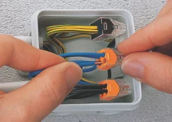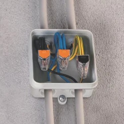 Simple and reusable, 3-way push-wire connector for solid and stranded conductors. Transparent housing ensures connection remains visible.