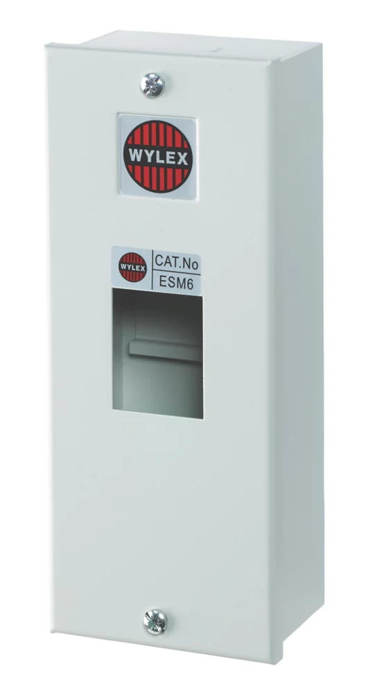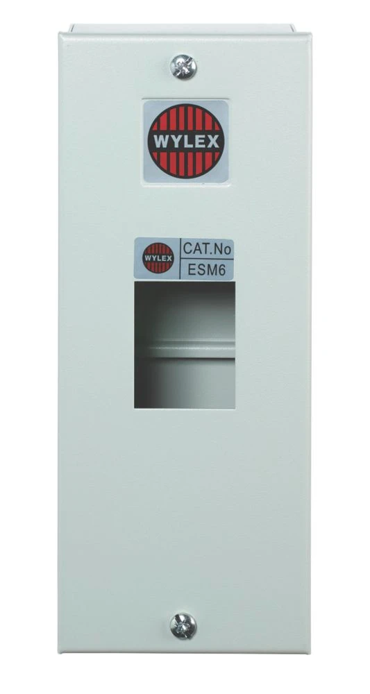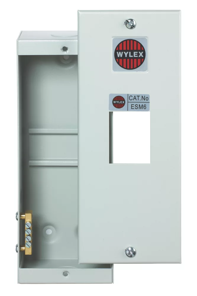 Metal enclosure with fitted DIN rail and earth bar. Ideal for housing Wylex 2-module devices such as surge arrestors, isolator switches and RCDs.